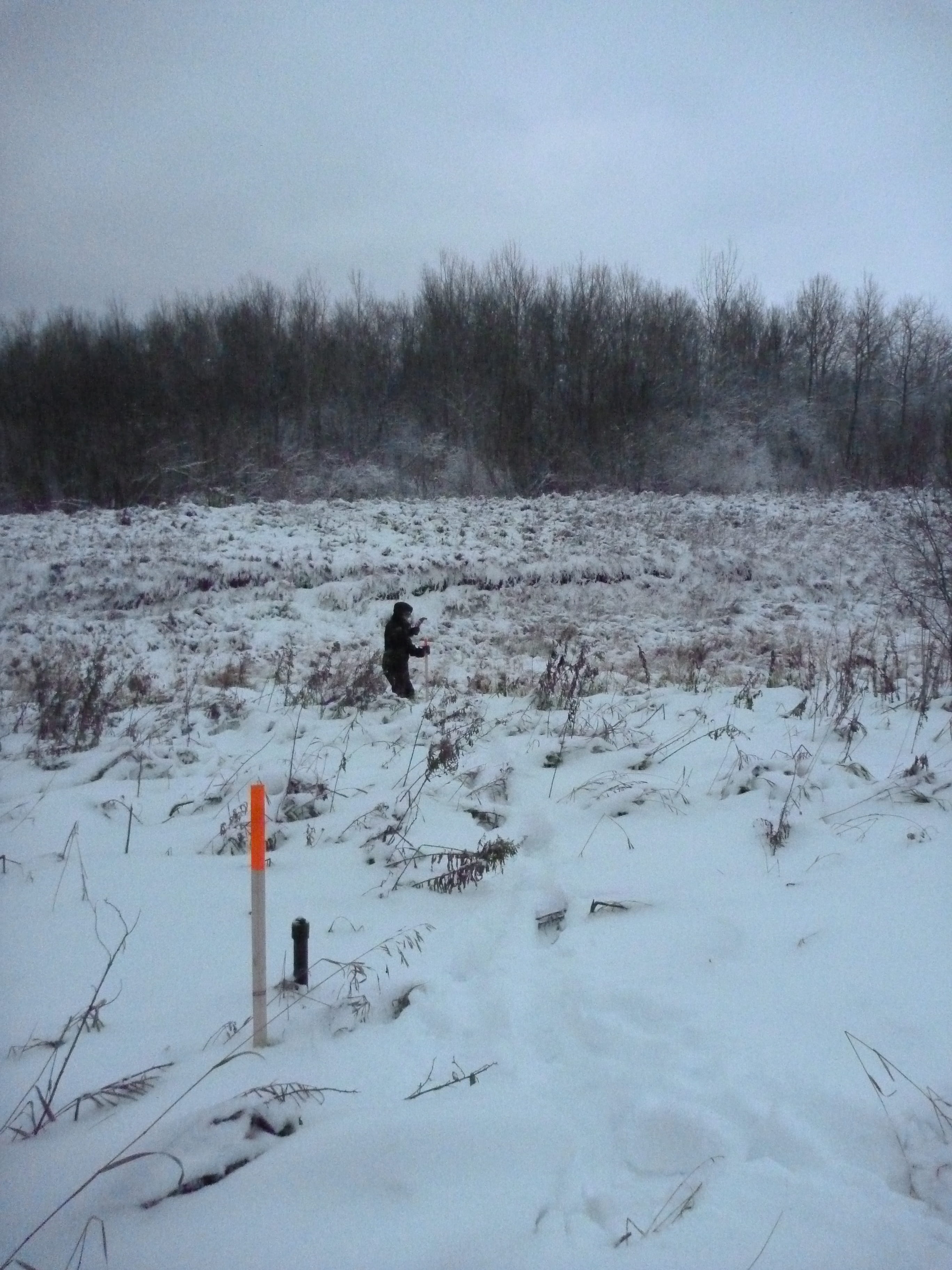 Freeze-up came at the end of November in Catfish Creek Watershed, bringing a close to the 2013 field season. Water and weather monitoring instruments not designed for extreme low temperatures or in danger of being drifted over by snow were removed from the watershed through the month of November. In total, 26 perched water table level loggers, 13 in-stream water level loggers, 2 automated water samplers and 1 weather station will get to spend the winter months in the warmth of the University of Manitoba lab; awaiting early spring re-deployment.