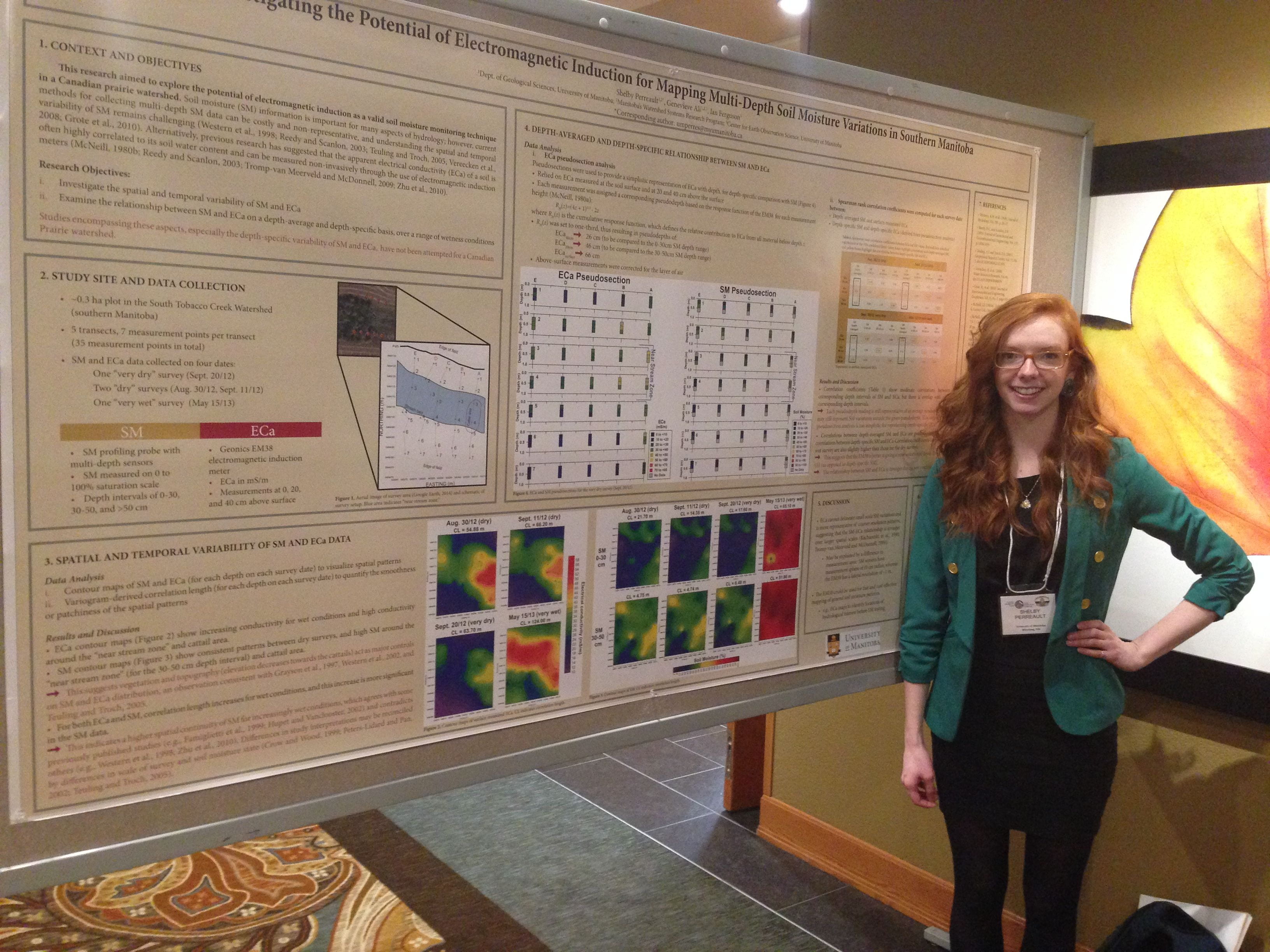 The joint Canadian Geophysical Union (CGU) and Canadian Society of Soil Science (CSSS) annual scientific meeting was held in Banff, Alberta from May 4-7, 2014. Genevieve Ali and her 2013 Research Team had the privilege of attending and demonstrating the work that they have been doing on their respective projects (see photos and descriptions below). The students who attended the conference were (Figure 1): Amber Penner, Shelby Perreault, Halya Petzold, Cody Ross, Lauren Timlick, and Erin Untereiner.