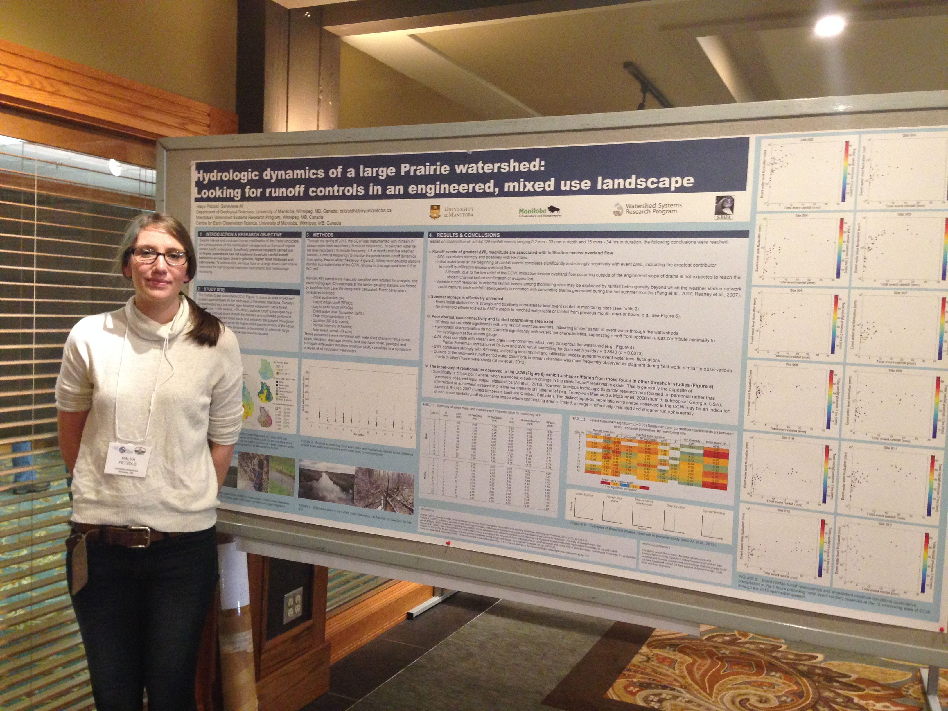 Genevieve Ali was honoured at the Tuesday night conference banquet where she received the 2014 Young Scientist Award. This award is given in recognition of outstanding research contributions by an individual within 10 years of obtaining their first Ph.D; Genevieve was nominated and selected by a committee. As two of her Master’s students, Halya and myself are increasingly honoured to have her as our mentor. Attending this conference furthered our realization that Genevieve is not only incredibly gifted in the study of hydrology, but her hard work is greatly appreciated by her peers and the hydrological community.