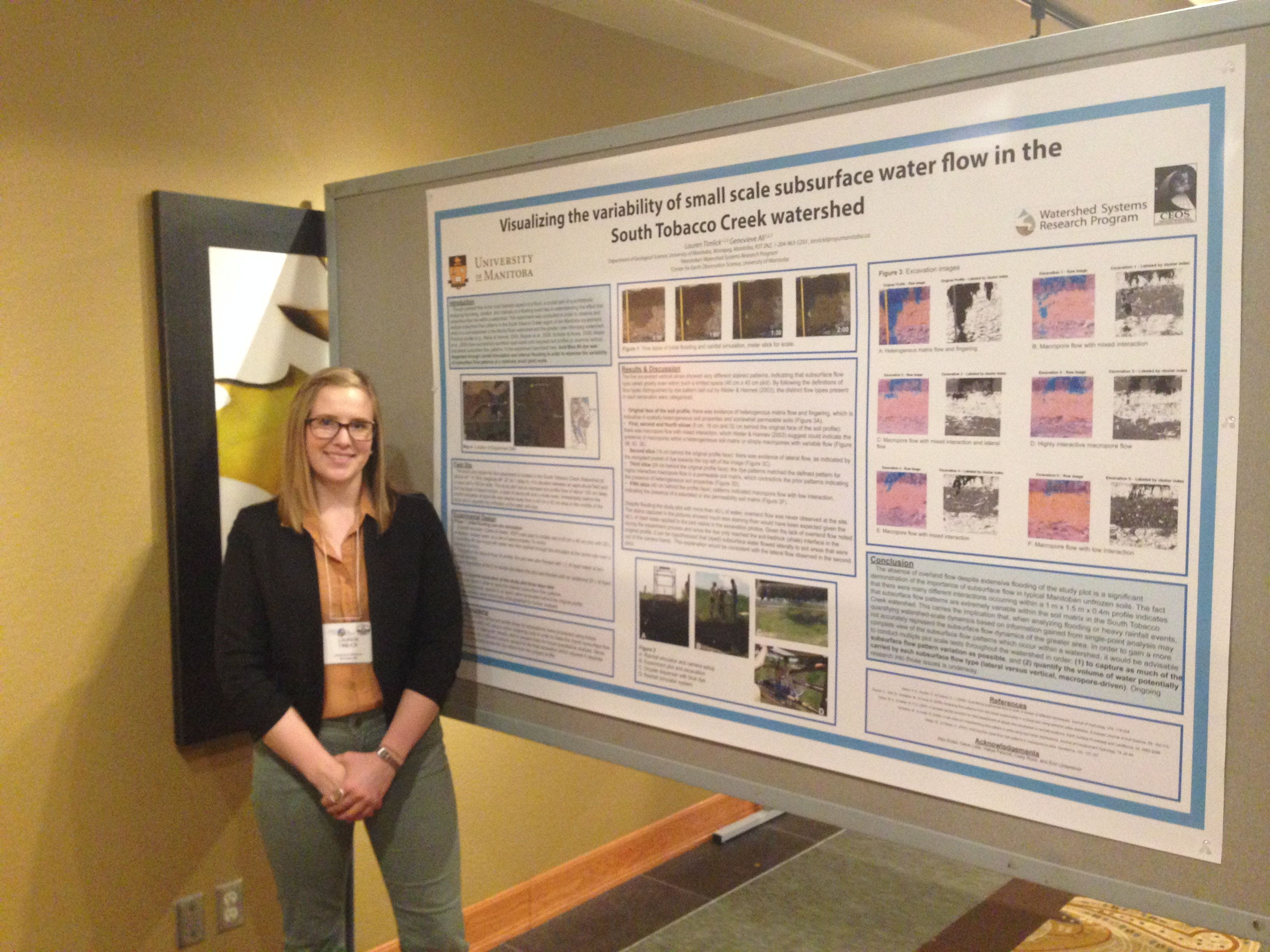 Figure 6 – Lauren Timlick at her poster “Visualizing the variability of a small scale subsurface water flow in the South Tobacco Creek watershed”.