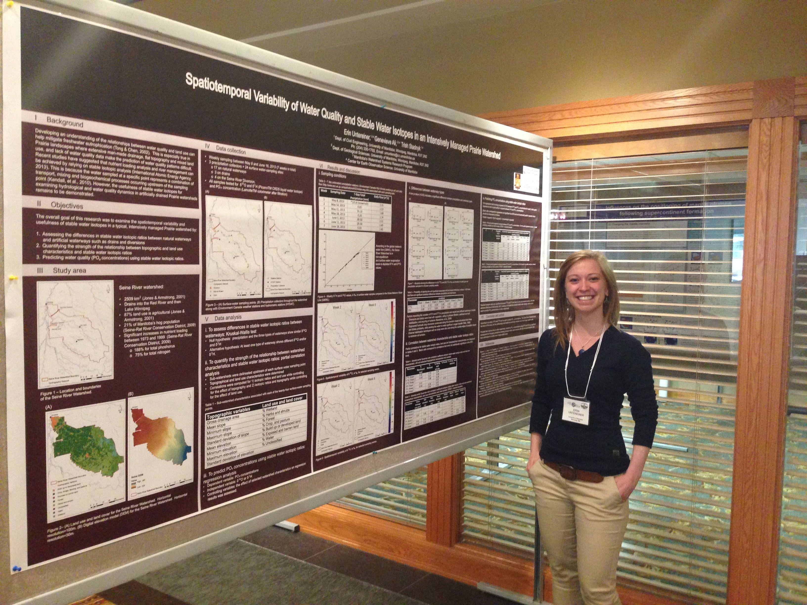 Figure 7 – Erin Untereiner at her poster “Spatiotemporal variability of water quality and stable water isotopes in an intensively managed Prairie watershed”.