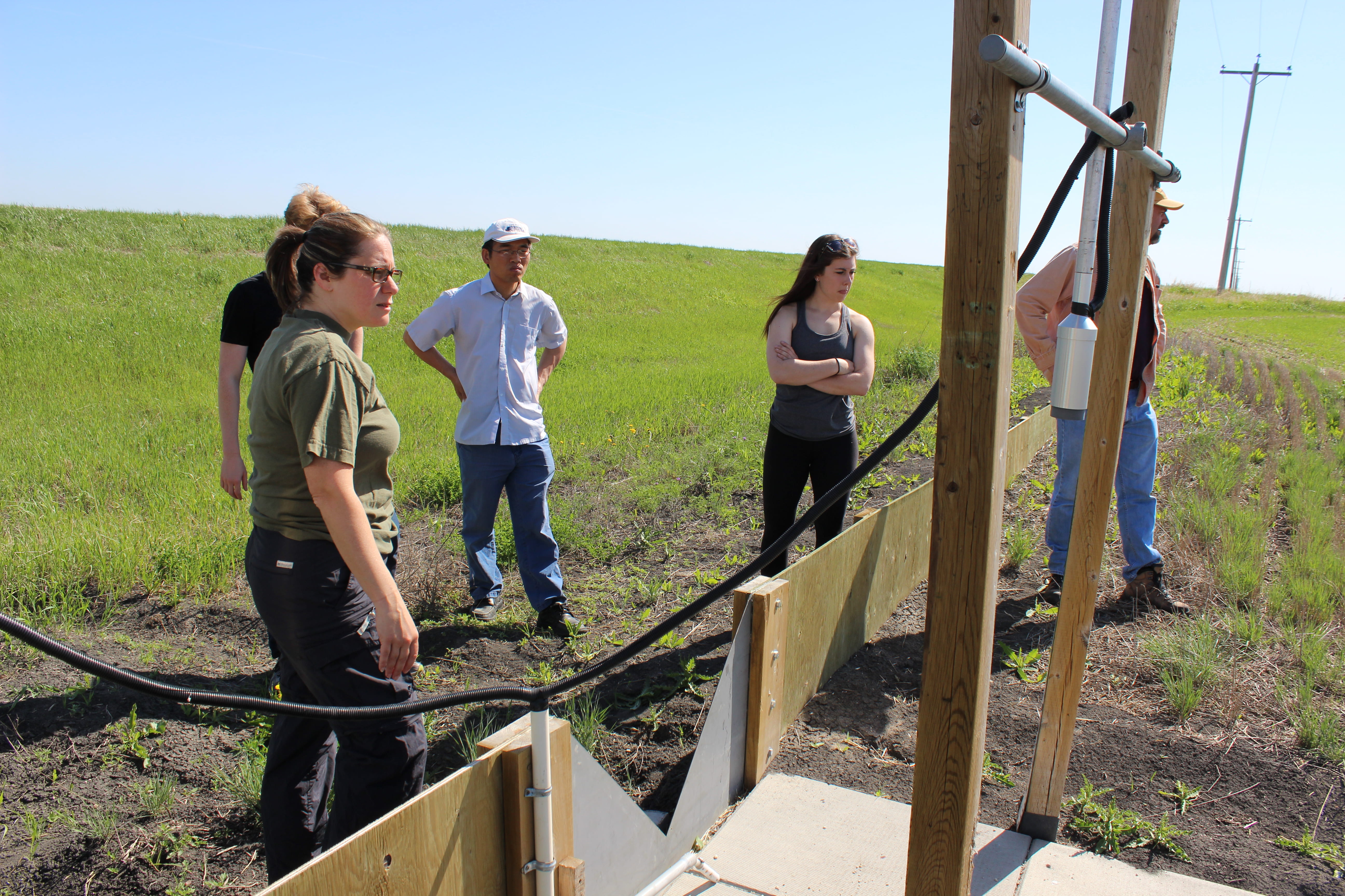 The Watershed Systems Research Program (WSRP) team had the great pleasure to host Merrin Macrae (University of Waterloo) for a 2-day visit on June 4-5, 2014. Merrin gave a seminar while she was here and provided us with a good overview of tile drainage impacts on hydrology and biogeochemistry from her network of Ontario sites. Merrin is initiating a new project in Manitoba through which she will be investigating surface and subsurface runoff and associated nutrient export through a system of surface drains, tile drains and retention ponds in the Red River Valley. The chosen site for this new research project is the Carl Classen’s farm in La Salle Redboine Conservation District, and Merrin had the opportunity to meet with the Classens while refining her plans for instrumentation and fieldwork. Merrin’s project will be done in collaboration with MCDA (Manitoba Conservation District Association) and the WSRP, and it is partly funded by the Lake Winnipeg Basin Stewardship Fund (LWBSF).
